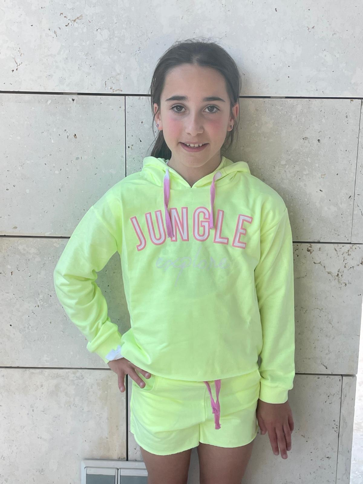 Conjunto de short las jersey con capucha en amarillo fluor