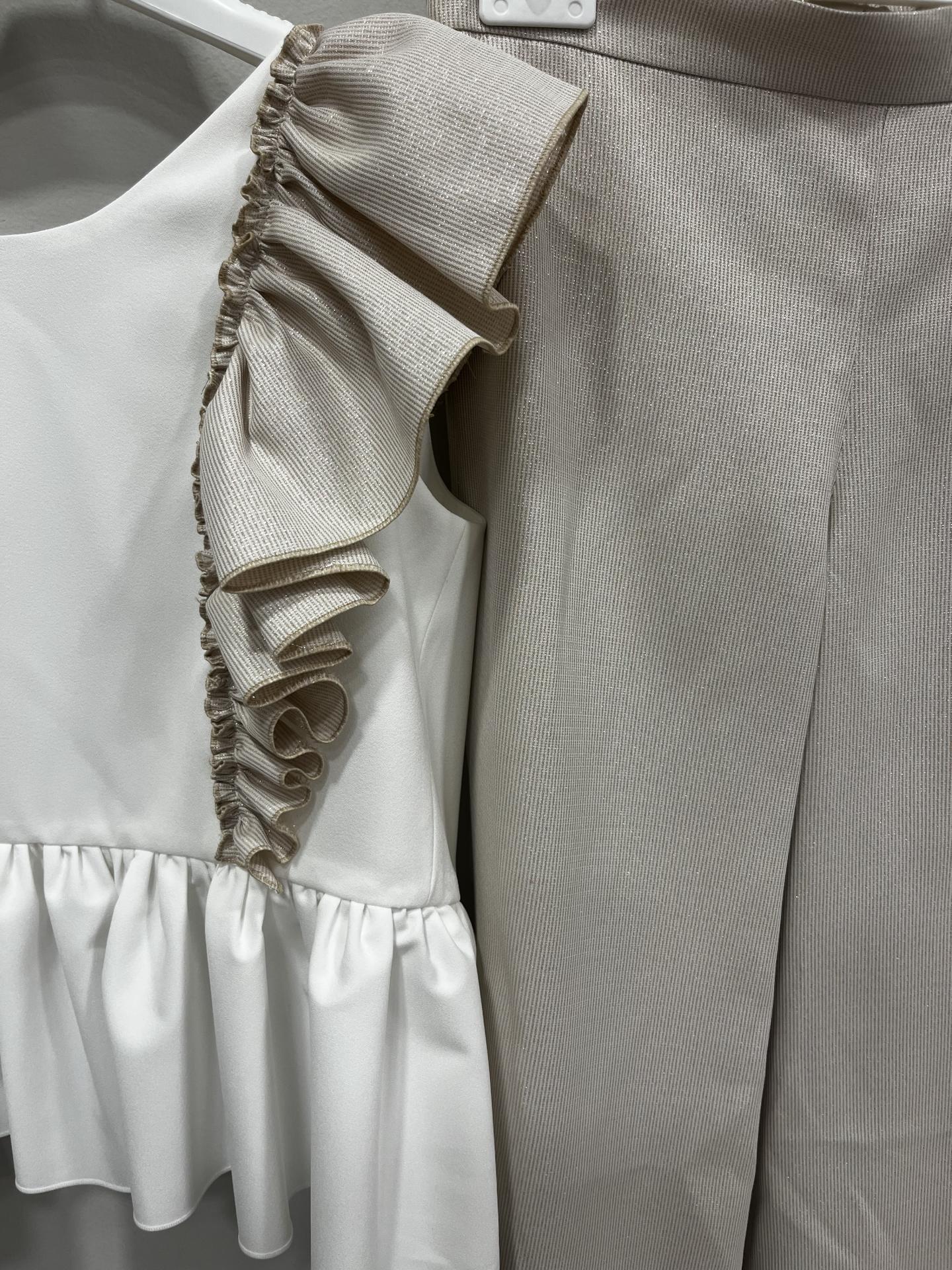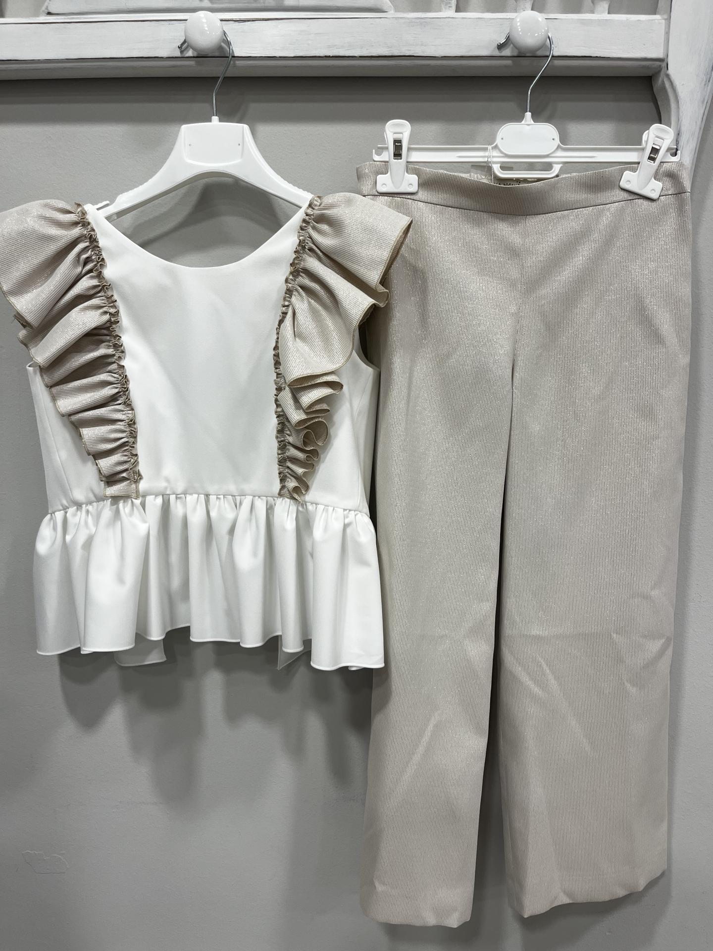 Pantalones en mini raya con lurex en beige
