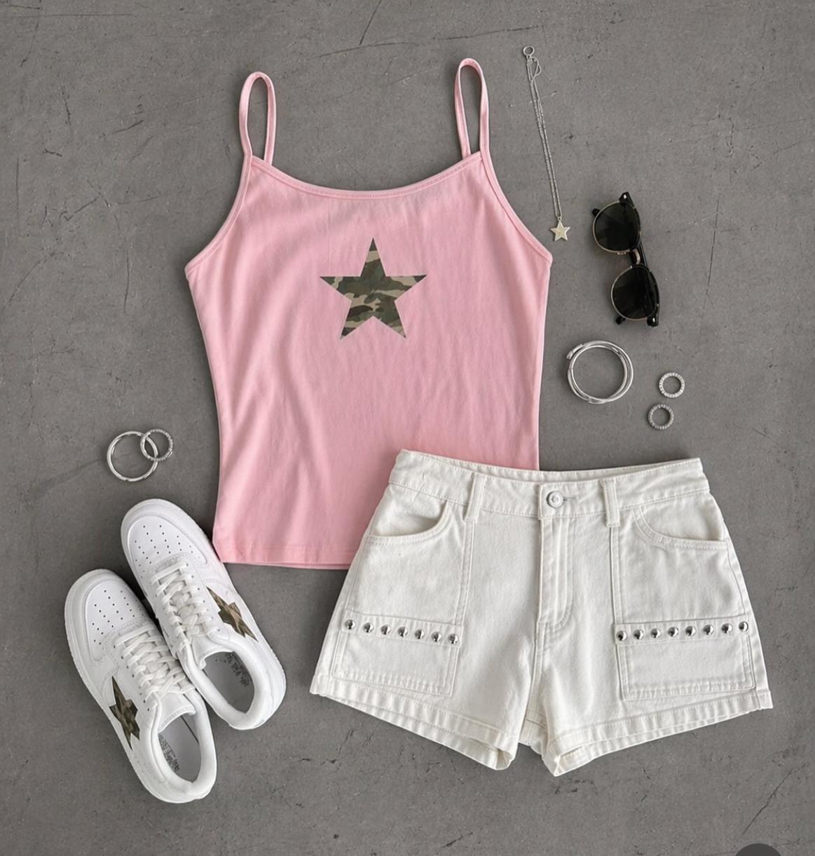 Short estrellas camuflaje y tachuelas