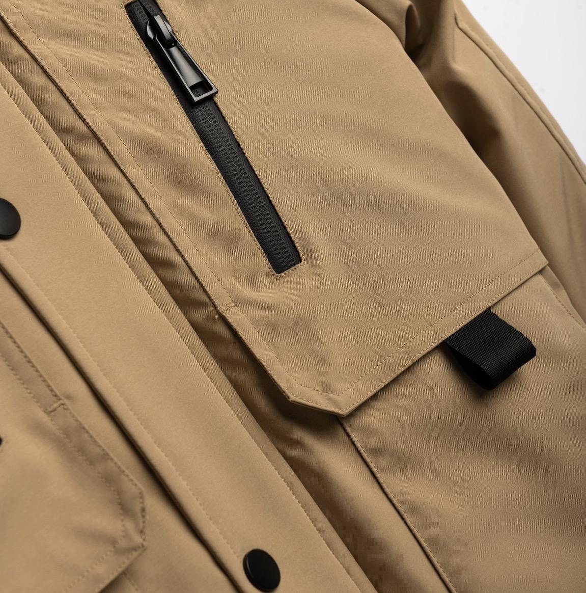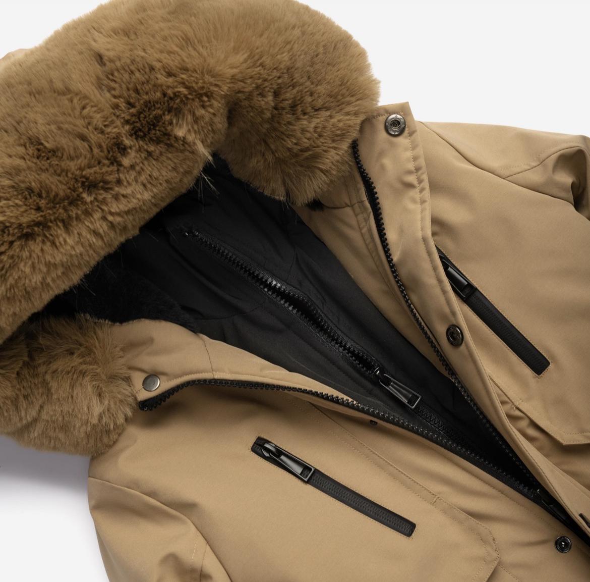 En camel con tejido hidrófugo