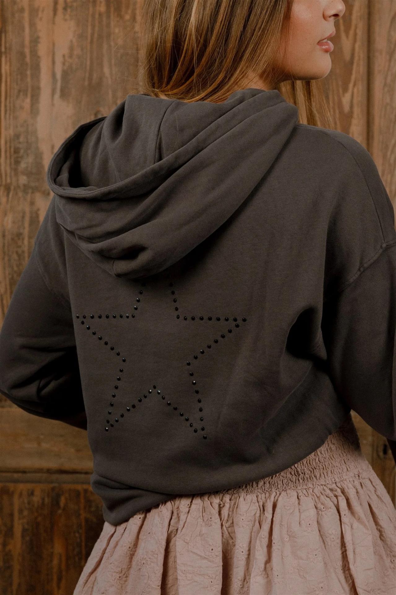 Sudadera Hoddie marrón strass
