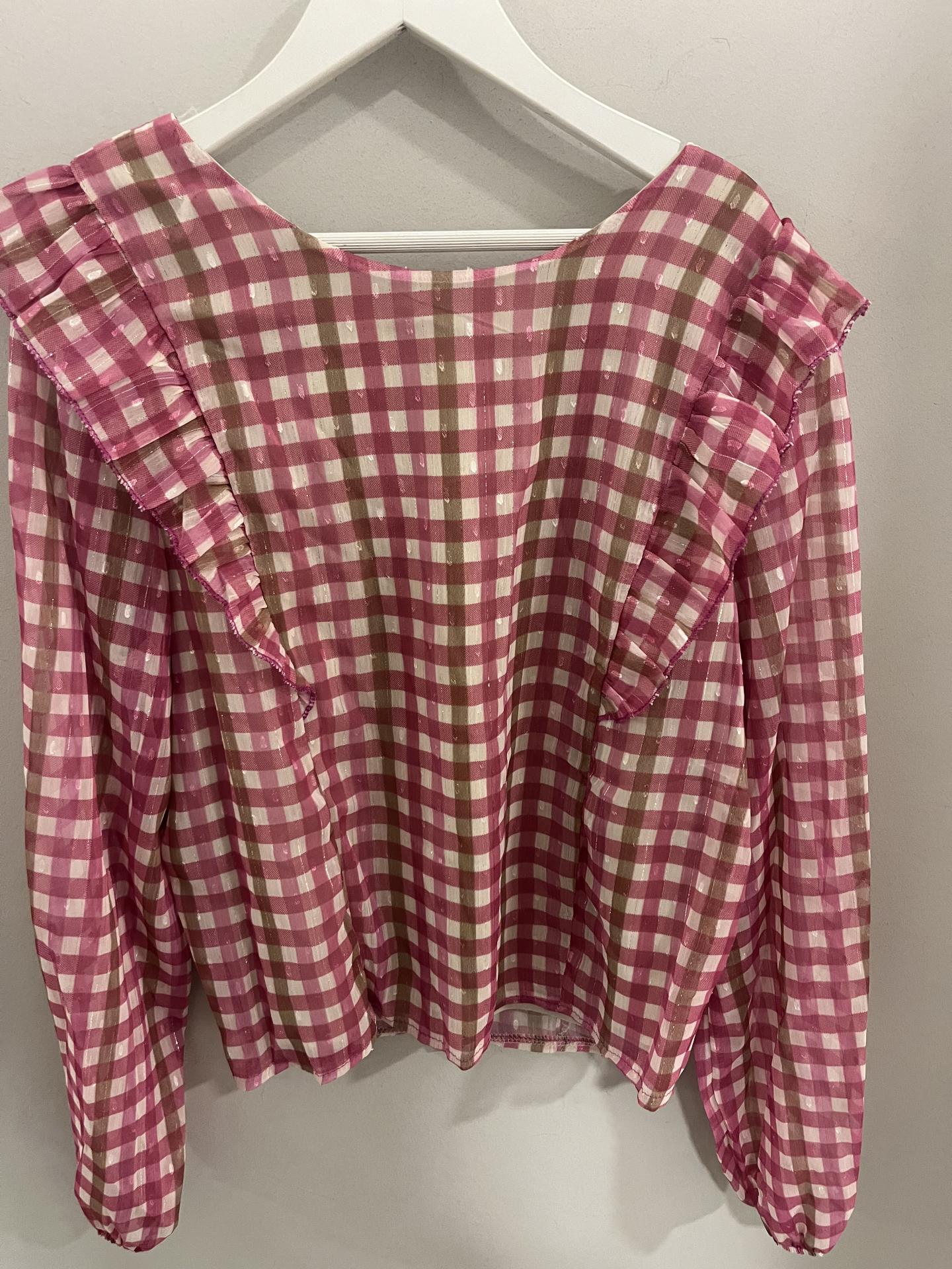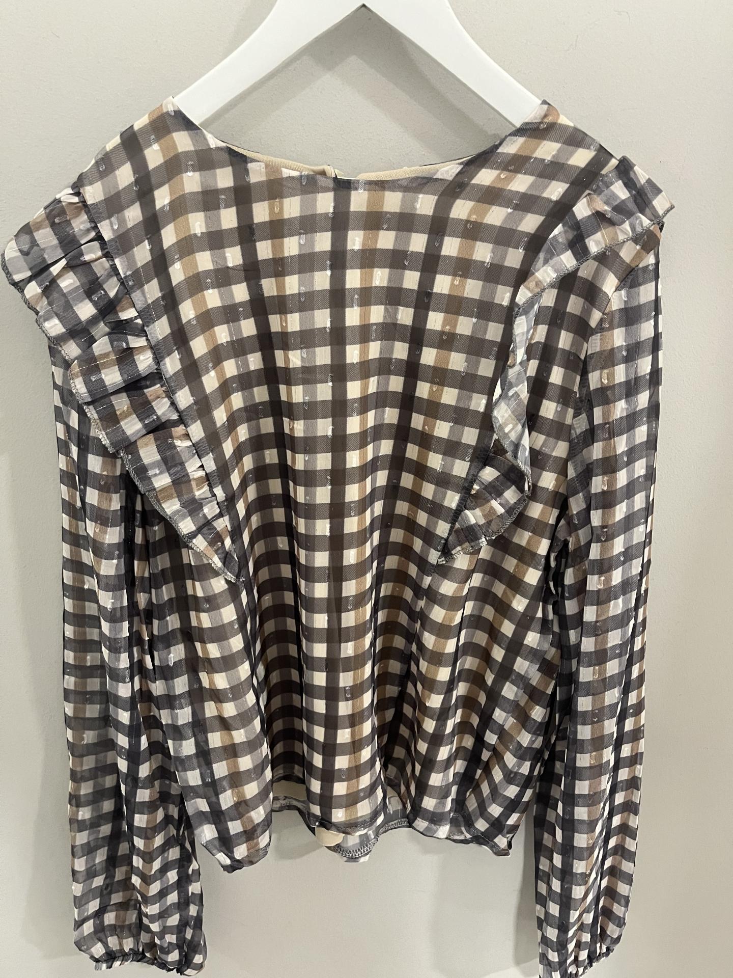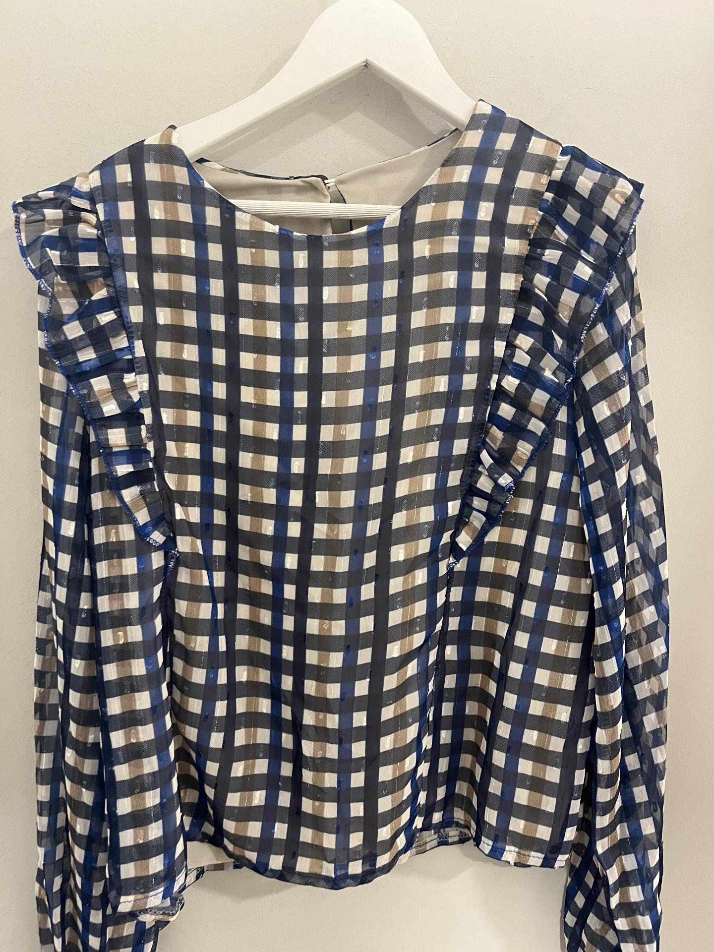 Bonita blusa de cuadros en talla única y engomada la pechera