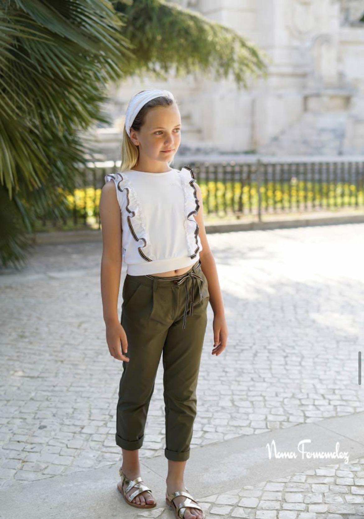pantalón en largo de color verde olivo y camiseta original como todo