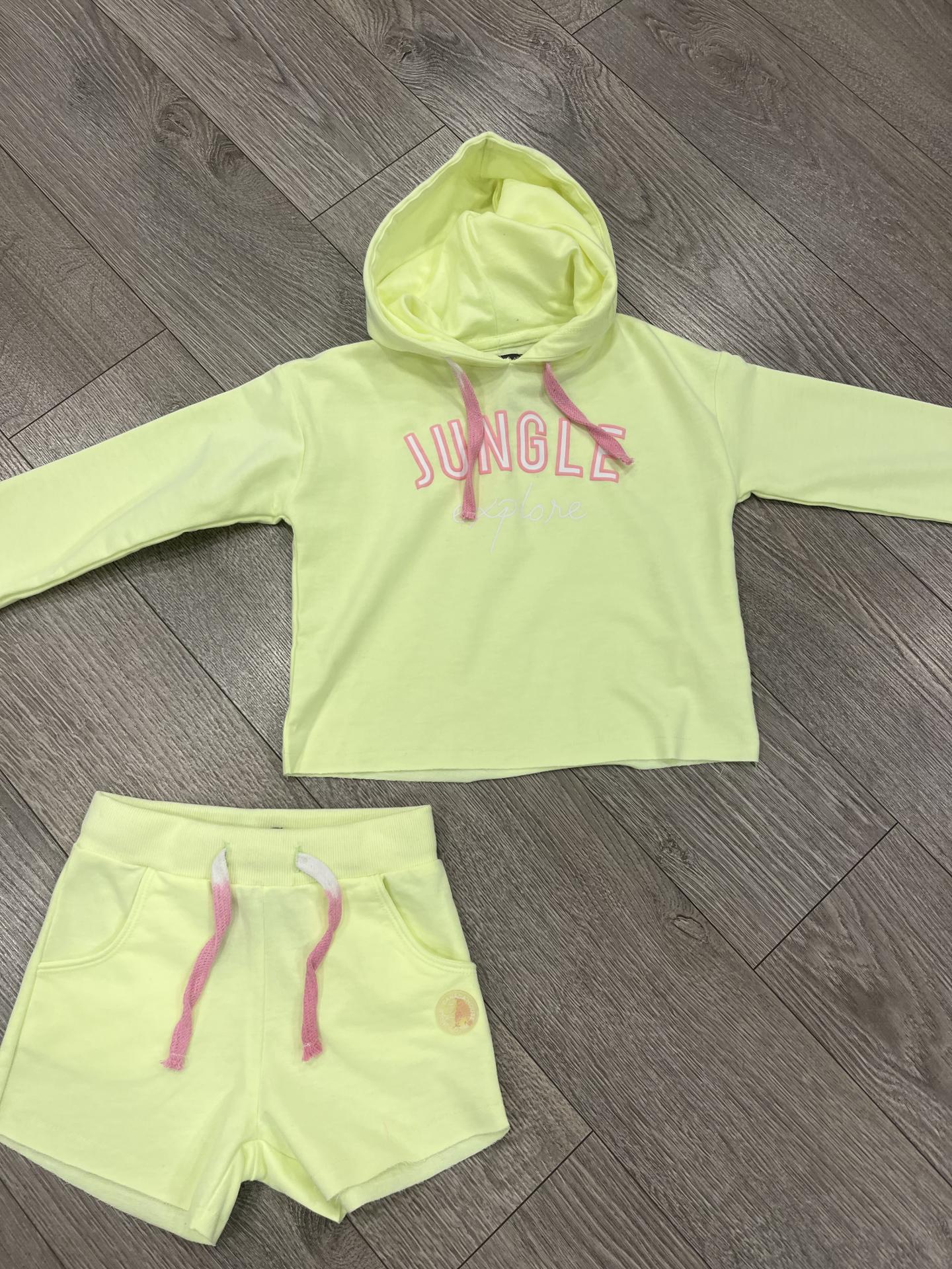 Conjunto de short las jersey con capucha en amarillo fluor