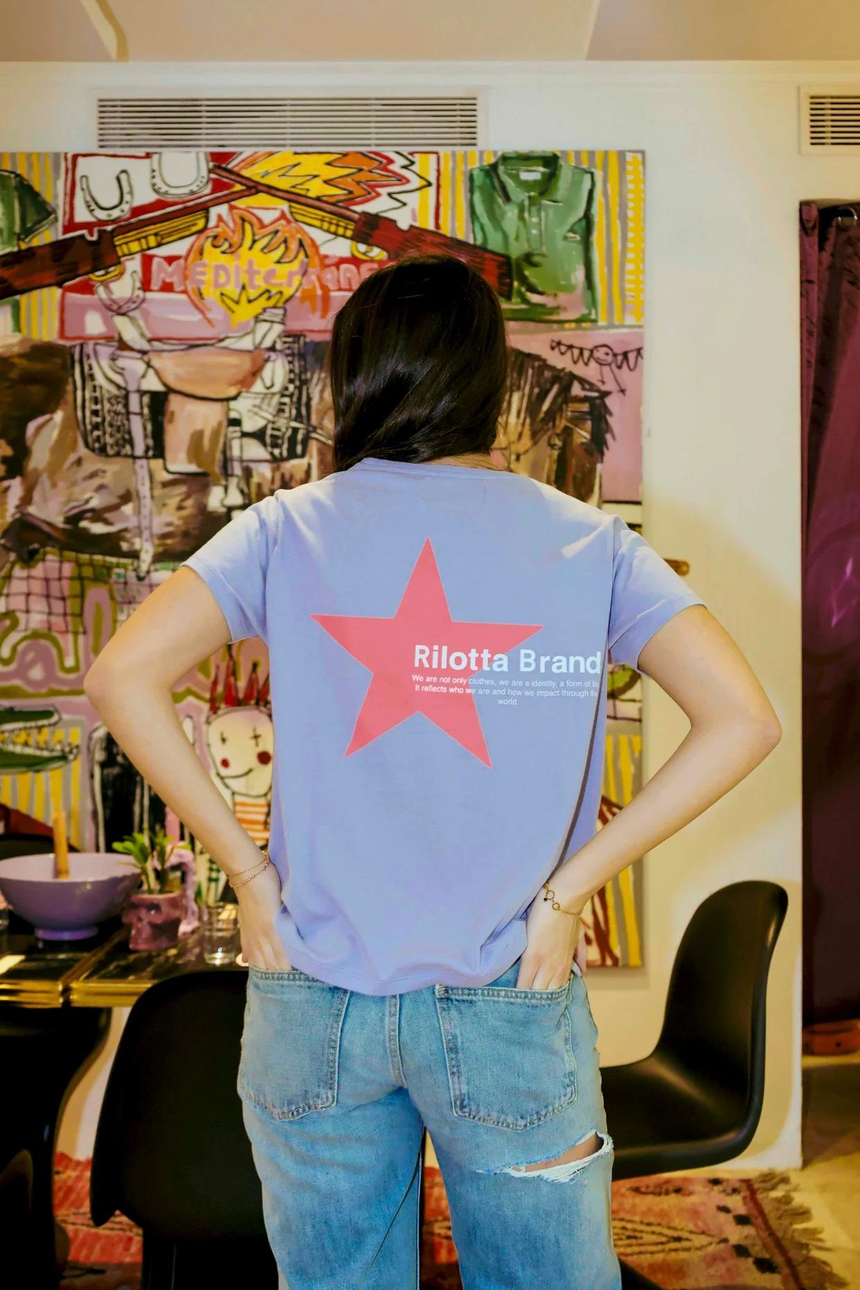 Aporta frescura y color a tu armario con esta camiseta en tono lavanda, suave y en plena tendencia. Su diseño se realza con una estrella en rosa flúor, que crea un contraste vibrante y moderno, perfecto para darle un toque divertido y actual a cualquier look.